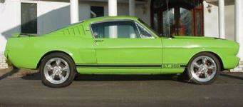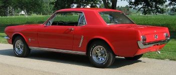 In 1965 a brand-new model; the fastback($2589), joined the hardtop($2372) and convertible($2614) as Mustang entered its first full year of production where 559,451 units would be built. The fastback had a larger backlight glass, a shorter trunk lid, functional fresh air vent on the B-pillar, and a folding back seat. All 1965 Mustangs where identical from the window line down and offered one of a 120hp(200ci 6-cycle), 200hp(289ci V8), 225hp(289ci V8), and a high performance 271hp(289ci V8). The new sporty GT package came with the V8 engine, special GT grille with built in fog lamps, a five-dial instrument cluster, an optional GT paint stripe, dual exhaust, and a special handling package. Luxury options included wood-grained vinyl trim, embossed bucket seat inserts, steering wheel with chrome rivets, and door armrests and courtesy lights. "Cobra Kits" where also first offered this year which included engine chrome dress-up parts, a Cobra distributor, performance options, dual exhaust,