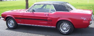 There was a quantity of 4118 California Special (GT/CS) hardtops built in 1968. They had the same rear taillight panels and spoiler as the Shelby, fiberglass side scoops, stripes, blacked out grille, fog lights, hood locks, but did not come standard with the 1968 GT options package although 8 percent were ordered with a subset of them. All GT California Specials were built at the San Jose assembly plant and were offered with any engine and paint combination.