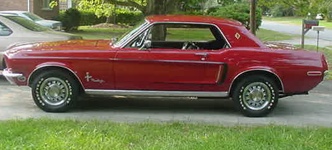 The 1968 Cardinal Edition limited edition Mustang is a Virginia and North Carolina territorial special. They are all hardtops and came with Cardinal Special rear quarter panel emblem, flip-open chromed gas cap, black interior, black side "C" stripe, wheel lip moldings, wheel covers, 200ci inline six cylinder engine, and special paint (Candyapple Red and possibly Wimbledon White).