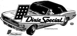 Mississippi and Louisiana had its own limited edition called the Dixie Special Mustang hardtop. It featured special paint colors, a Dixie license plate, and a Dixie Special emblem. From the newspaper articles we have found, it appears that the car included other upgrades such as a louvered hood, sportier wheel covers, and vinyl top. We think there is at least one out there. If you have any additional information let us know.
