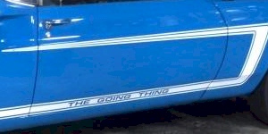 The Cleveland sales district created a regional special promotion edition 1969 Mustang (and Torinos) called The Going Thing. 109 Mustangs had special stripes installed with "The Going Thing" written on the rocker. They were installed on stock Mustangs with all sorts of engine sizes. The stripes were similar to those on factory Ford drag cars. The promotion was kicked off at the Thompson Drag Raceway in Thompson, Ohio.