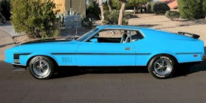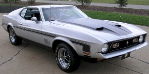 The 1972 Mustang Mach 1 was a sport special model consisting of a NASA-style scoop hood; argent silver or black lower body finish; color keyed front bumper, rear fender moldings, and sport mirrors; black honeycomb grille with integrated fog lamps; sport hubcaps with trim rings; a 302ci, 2-barrel, V8 engine; and a sport interior with high back bucket seats, electric clock, triple instrument pod, black and wood grain dash trim, and deluxe carpet and door panels.