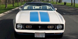 The 1972 Mustang Sprint was created to promote the 1972 Olympics and to participate in the Washington DC Cherry Blossom Parade. All Sprints were painted white with blue and red accents. There were over 6200 Sprint hardtops, almost 3100 Sprint Sportroofs, and 50 Sprint convertibles built. They came with two different Sprint Decor options. The "A" Sprint package defined the white paint with red and blue accents, color matched seats and carpets, white wall tires, and the 1972 Olympic flag decal on the rear fender. A "B" Sprint package added mag-type wheels to the "A" option list.