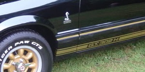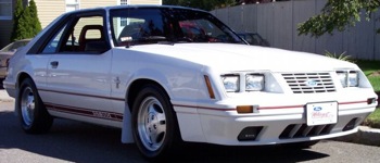 Ford produced a quantity of 5260, 20th Anniversary GTs in 1984. They were all painted Oxford White and have red interiors. They have the GT350 stripes on their rocker panels. You could get either the W-code 2.3L 4-cylinder turbo or the M-code 5.0L V8. Ford did not get Shelby's permission to use the "GT350" name and lost a suit with Shelby.