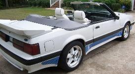 The 1989 Saleen Mustang saw minor changes over the 1988 conversion gear. The big changes were a new rocker panel striping design and a new SSC hatchback model. Standard equipment included a top-shelf Pioneer KEH 6050 AM/FM cassette & BP 850 graphic equalizer audio system, 225/50VR-16 General XP-200V tires, Monroe stocks, Saleen style aerodynamic body kit, 170mph speedometer, Hurst shifter, articulated FloFit sport seats, and a special Momo steering wheel. You even got a Saleen Mustang jacket to wear. For the new SSC, a tweaked version of the E-code 5.0L was installed. It put out 292hp with a 65mm throttle body, new intake plenum, larger cylinder head ports, wider rocker arm ratios, HD cooling system stainless tubular headers, and Walker Dynomax mufflers. All the SSCs were painted white with gray/white interiors.