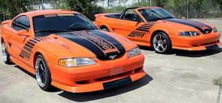 The 1996 Boss Shinoda was built by Shinoda Performance Vehicles (SPV). They were placed on the GT and Cobras and came in two levels. Level 1 (Gen I) was a graphics package, Budnick wheels, and a body package (front spoiler, wheel flares and rear "super" spoiler.) The Level 2 (Gen II) added some performance upgrades such as the Shinoda wheels and suspension modifications. As with other companies making modifications to cars right from the Ford factory, all the SPV items could be ordered and placed on any Mustang. SPV Factory modifications included a dash plaque and Shinoda serial number. These were generally built 1994-98, but I have seen SPV dash plaques on later cars as well.