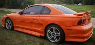 The 1996 Saleen Mustang came in four flavors. The S-281 SOHC built from the 4.6L Mustang GT provided most of the conversions. A higher output S-281 DOHC built from the 5.8L Mustang Cobra was available. An S-351 version with a large 5.8L V8. And finally a couple of 500hp supercharged 5.8L Saleen SR models were built for racing. See our 1996 Saleen Data Explorer for more information.