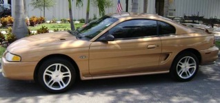 1997 Mustang changes included a larger grille opening to match the larger fan and radiator for better cooling. All models also received the passive anti-theft system (PATS) used on the 1996 GT and Cobra. All automatic transmission had a new thicker shifter. The GT got new 17 inch wheels with a gray metallic center. And Bright Tangerine and Mystic exterior paint was replaced with Aztec Gold, Autumn Orange, and Pacific Green.