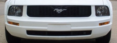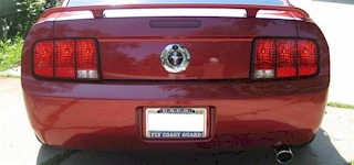 Design elements from 40 years ago come back in the redesigned 2005, 40th anniversary Mustang. Mustang attitude from the 1964 to 1968 grille is back from its slightly slanted forward design to suggest a forward jetting hood, recessed round headlights separated from the grille by a color-keyed integrated body panel, separate turn signals lower in the bumper, optional fog lamps mounted in the grille field, and the Mustang galloping horse badge in the center. The rear has the three separate tail lights which do not wrap around to the sides, a simulated center gas cap badge, and no large recessed "MUSTANG" letters to remind us that this is a Mustang. The side coves are less pronounced than the 2004 and there is no simulated wheel air scoop at the end, but smaller rear quarter windows set apart from the door windows brings back elements of the fastback body line. Only two engines are available but they are the powerful 208hp, 4.0 liter, V6; and the 300hp, 4.6 liter, V8. The interior options include color-configurable instrument panel where a touch of a button can select more than 125 different background colors. GT options are available for both the coupe and convertible body styles. With this redesign comes a change in manufacturing location from 40 years in Dearborn, Michigan, to new facilities 20 miles south in Flat Rock, Michigan.
