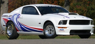 The 2008 Cobra Jet is an extensive options package designed by Ford Racing added to the V6 bodyline to create a track-only race car. The options package includes the 5.4L V8 with racing upgrades and optional supercharger, racing transmission, racing wheels and tires, racing suspension and handling, roll bars, all welded body seams, and tons more available from Ford Racing. The Cobra Jet is limited to 50 cars and are all white.
