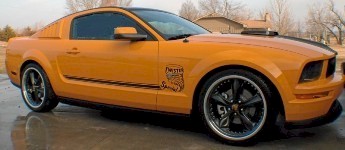The 2008 Mustang GT Twister Special is built by R&A; Motorsports; and only comes in Grabber Orange; and only in the Kansas City area just like the first 1970 Mach 1 Twister, Kansas City, Mustang promotion. The 2008 Twister is limited to 96 coupes and convertibles. Besides all the Twister graphics and badges, the modifications include Foose 20 inch wheels, shaker hood and hood scoop, duck wing spoiler, sequential tail lights, custom black top and rear deck panel, rear quarter window panels, and a tri-bar pony on the grille.