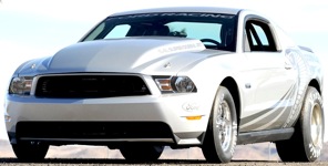 The 2010 Mustang Cobra Jet is a limited run of 50, track-only, cars that follow are all white and built on the same production line that produces the 2010 Ford Mustang production car. Building on the track-only 2008 Mustang Cobra Jet, the 2010 version has new graphics, a choice between several 5.4L supercharged or normally aspirated V8 engines, adjustable front and rear shocks, manual steering and brakes, roll cage, competition shifter, Hoosier drag radials, Weld wheels, and a rear mounted battery with cut-off switch.