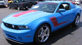 The 2010 Roush Mustang continues to be offered as several performance upgrade packages. One is the 427R which include Roush Front fascia with driving lamps, front chin splitter, side rocker splitters, rear valance, rear decklid spoiler, fender badges and rear decklid emblem, front windshield banner, and 427R striping kit. Additional options include: Roush exhaust, quarter window louvers, interior upgraded seats with suede, 20 inch cast chrome wheels and tire upgrade, short throw shifter with white knob, and illuminated door sill plates.