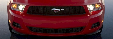 The 2010 Mustang GT comes standard with the 315 horsepower 4.6L V8, newly designed low profile rear decklid spoiler, and upgraded wheels. Also the outside the GT front end includes a wide lower grille, black dividers between the large round headlamps with integrated turn signals and the grille with fog lamps and black chrome pony emblem.